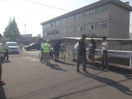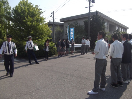 生徒会・農クの生徒や各クラス、部活単位で参加し、自転車通学の生徒に反射材を配布したり、鍵かけの徹底を呼びかけました。