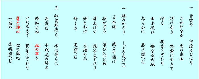 平成12年に「石川県立松任農業高等学校」は「石川県立翠星高等学校」に校名を改称しました。「翠星」の由来は校歌第3番に歌われる「松の翠」と「星と澄め」から命名されました。