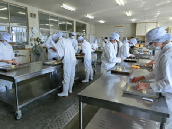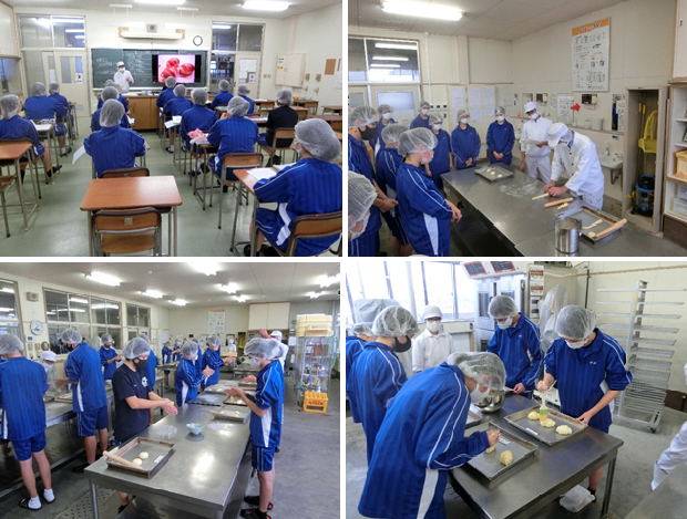 令和3年11月10日水曜日、1年生が科目[産業探究]でバターロールの製造をしました。1年生にとってはこれが初めての実習になります。生地を伸ばしてバターロールの形にするのは大変ですが、上手くできている人が多くて驚きました。来年のパン検定が楽しみです。
