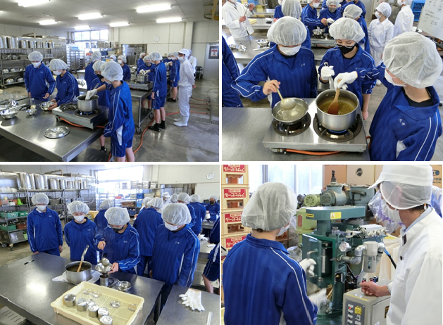 令和3年12月1日水曜日、1年生の科目[産業探究]で梅ジャムの製造を行いました。梅シロップを製造する際に出る梅のピューレに砂糖を加え、コットリコトコト煮詰めて作ります。調理実習とは違い製造から瓶に入れて封をするところまでするので、普段とは違う緊張感をもって挑めました。