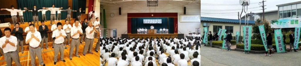 翠星高校生徒会は、元気な学校をめざし活動しています。(写真は、総体総文壮行式、役員選挙、マナー週間の様子)