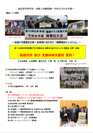 ・第45回 毎日農業記録賞 高校生部門 優良賞