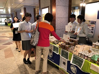 2019年6月21日 10時29分 6月15日(土)、松任駅南広場で白山市主催の「マルシェ ドゥ ハクサン」が開催されました。食品科学研究会ははくさん米粉を使用したクッキーや松任梨のタルトなどを販売しました。