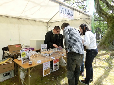 4月22日(日)に松任城址公園で「いしかわ・白山風と緑の楽都音楽祭2018」が開催され、食品科学研究会からは米粉クッキーや松任なしタルト、ゆずマーマレードなどを販売しました。おかげさまで全て完売することができました。今年度初めての大きなイベントを無事成功させ、好調な出だしになったと思います。