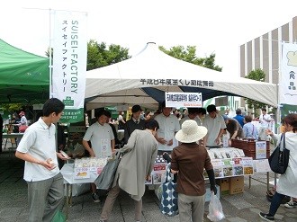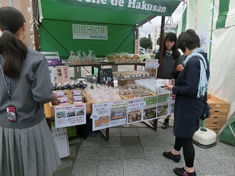 6月15日(土)、松任駅南広場で白山市主催の「マルシェ ドゥ ハクサン」が開催されました。食品科学研究会ははくさん米粉を使用したクッキーや松任梨のタルトなどを販売しました。