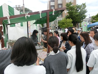 9月15日(土)、食品科学研究会はアピタ松任で行われた「うまいもんまつり」に参加し、食品科学研究会と(株)六星・金沢ゆず生産者で共同開発した「金沢ゆず大福」の販売を行いました。生徒たちの笑顔で70個全てを完売することができました。
