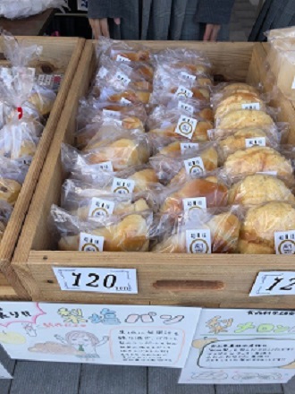またPAN-BUでは、はくさん米粉あんぱんを販売しました。たくさんの人に買っていただき、全て完売することができました。今回1年生は初めての販売でしたが、元気に接客をすることができました。