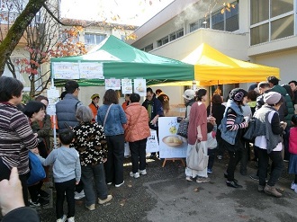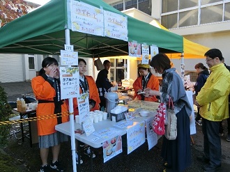 10月14日(日)、食品科学研究会は道の駅めぐみ白山で開催された「マルシェドゥハクサン」に出店し、白山市と共同開発した、「松任梨のタルト」、「松任梨のコンポート」、松任梨を使ったパン3種を販売しました。全て完売し、地域の方に地元の素材である「松任梨」をPRすることができました。