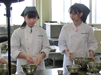 2019年4月3日(水)テレビ金沢「となりのテレ金ちゃん」内で食品科学研究会が特集されました! アイドルグループ「Juice=Juice」リーダーで石川県出身の宮崎由加さんがリポーターを務めてくれて、私達が構築した「廃棄果皮0システム」について話たり、一緒に金沢ゆずピール煮を使ったスイーツ作りをし、部員と楽しく取材を行いました。取材を受けたことで、自分たちの活動に自信が持てました。