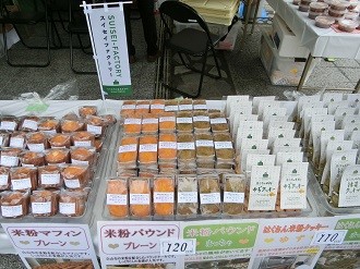 6月16日(土)に、松任駅南広場で「マルシェ ドゥ ハクサン」が開催されました。食品科学研究会では白山市の米粉を使用したマフィン・クッキー・パウンドや、白山キムチ、白山米粉あんぱんなどの販売を行いました。イベントが開始してすぐにたくさんのお客さんが買いにきてくださり、大盛況でした。