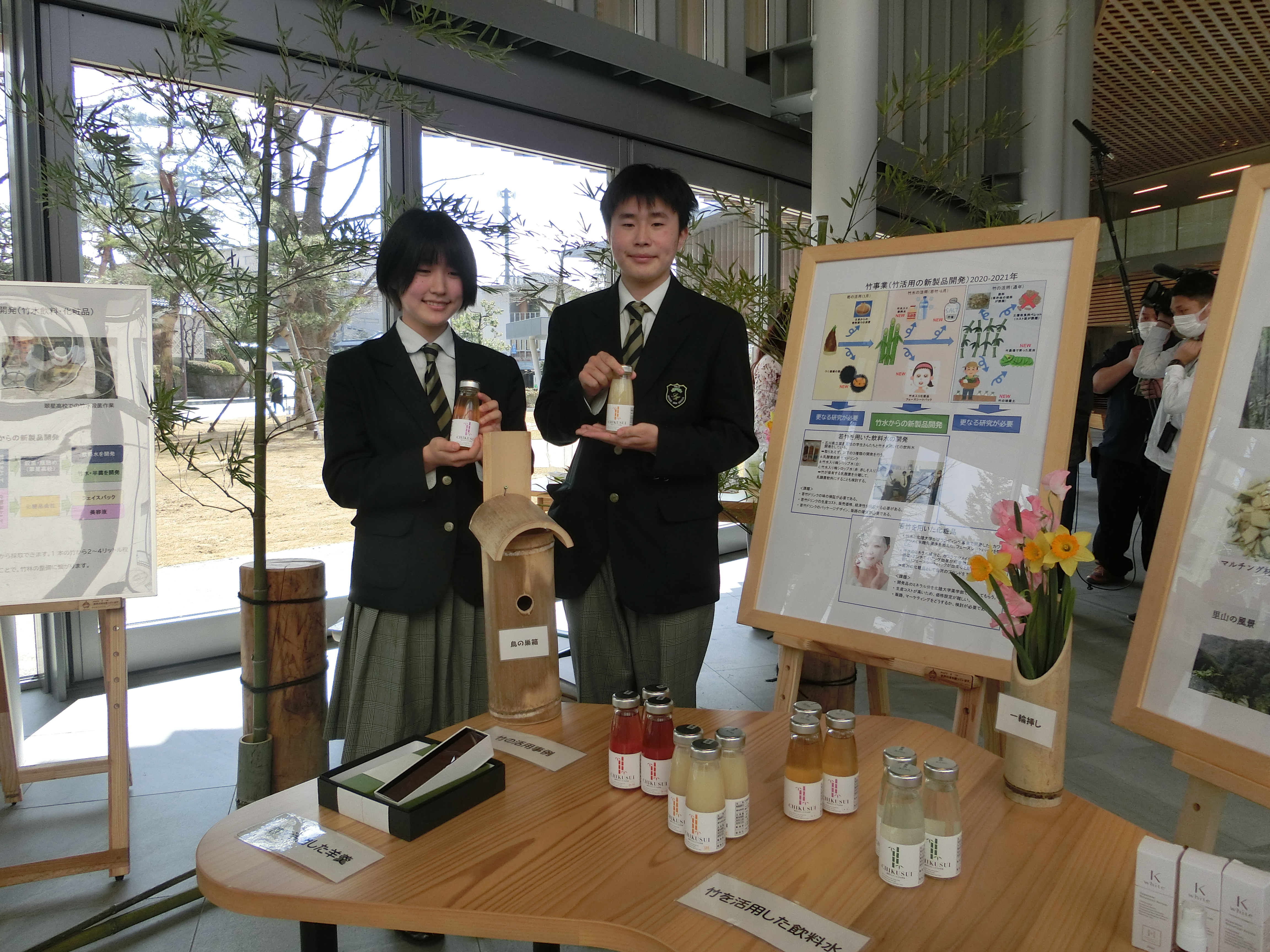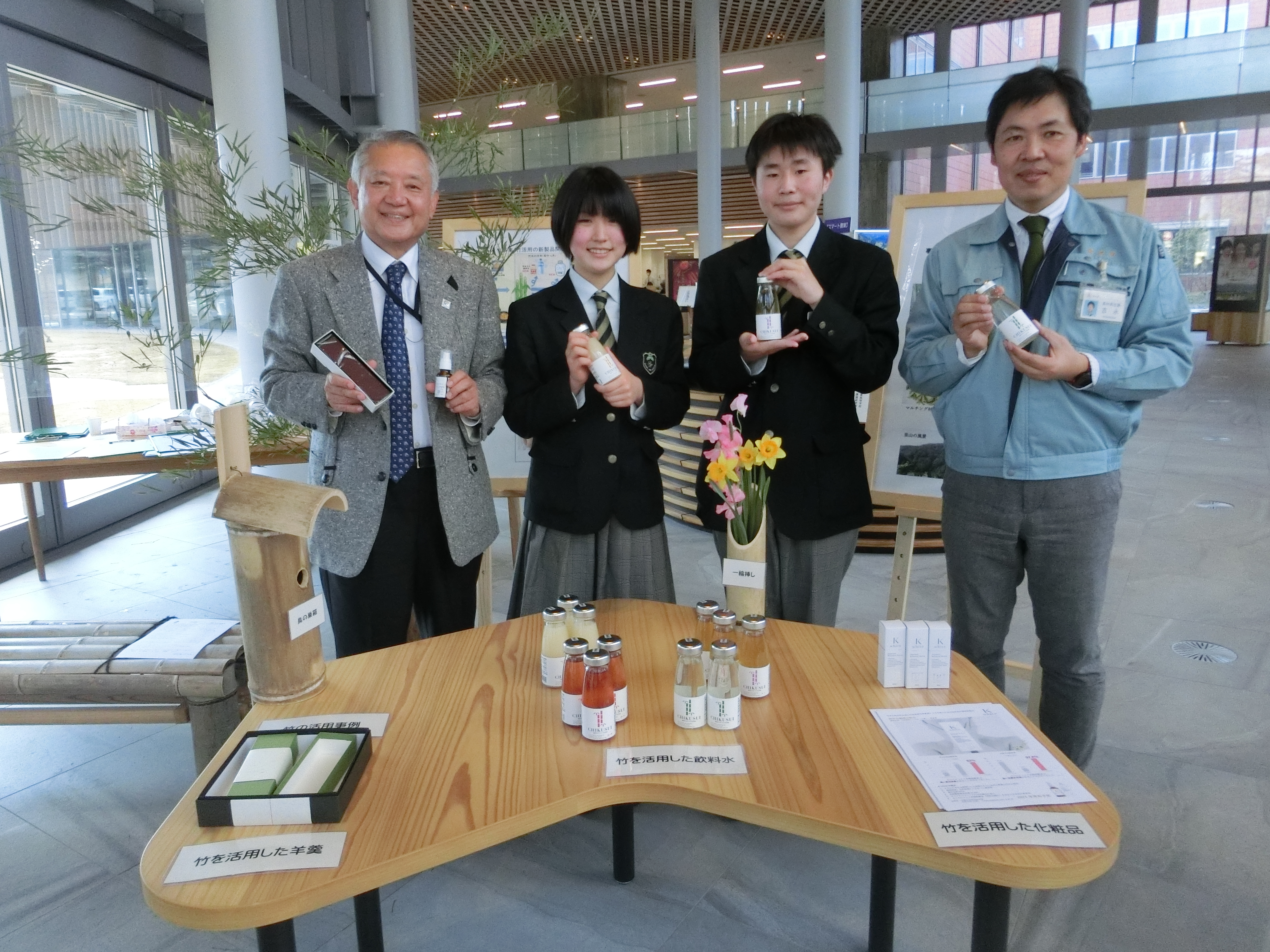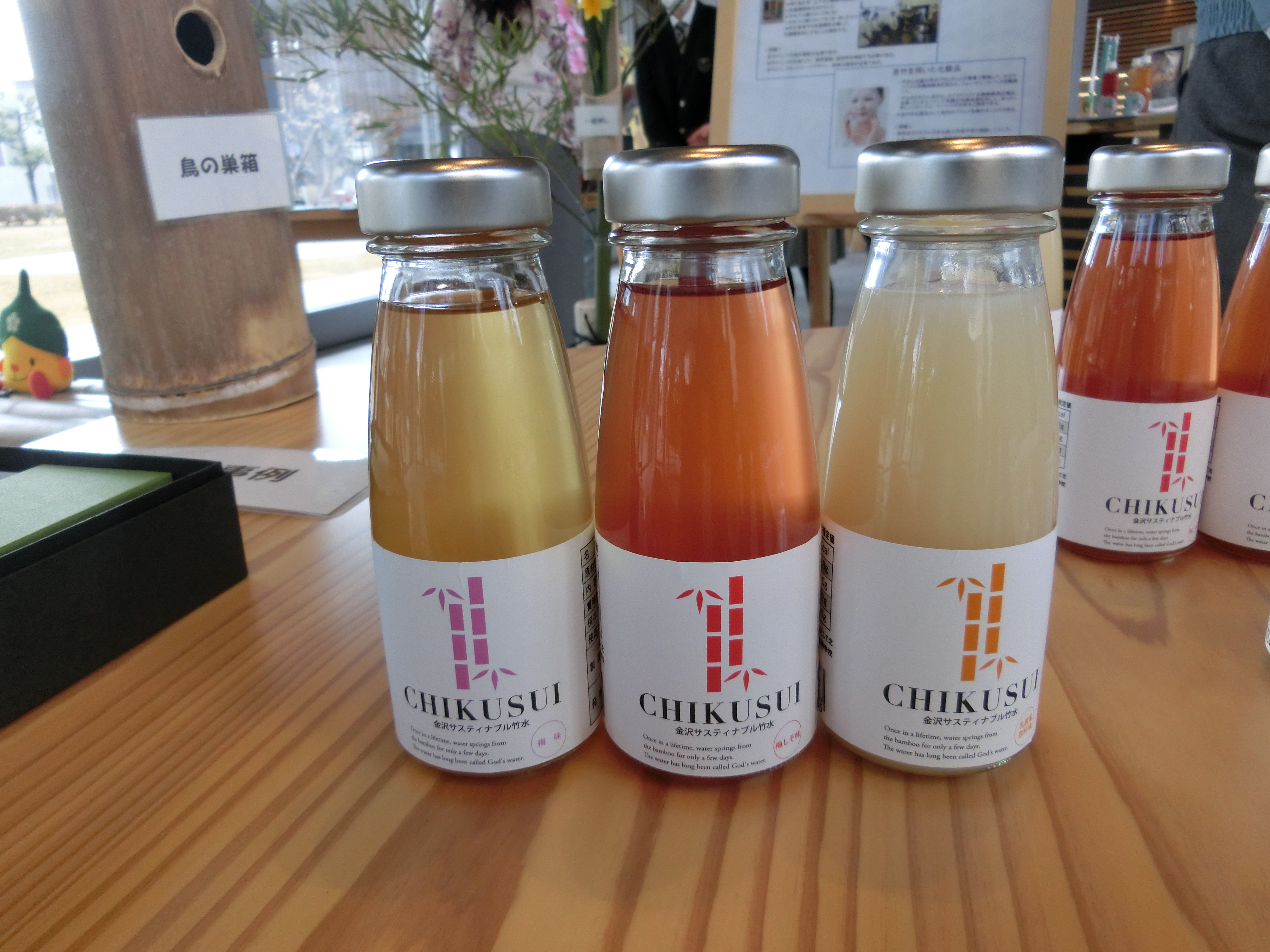 金沢市の放置竹林を減らすための竹活用プロジェクトに、北陸大学を通じて参加しています。ついに竹水ドリンクが完成し、金沢市役所で完成披露会が行われました。(2021年3月15日)