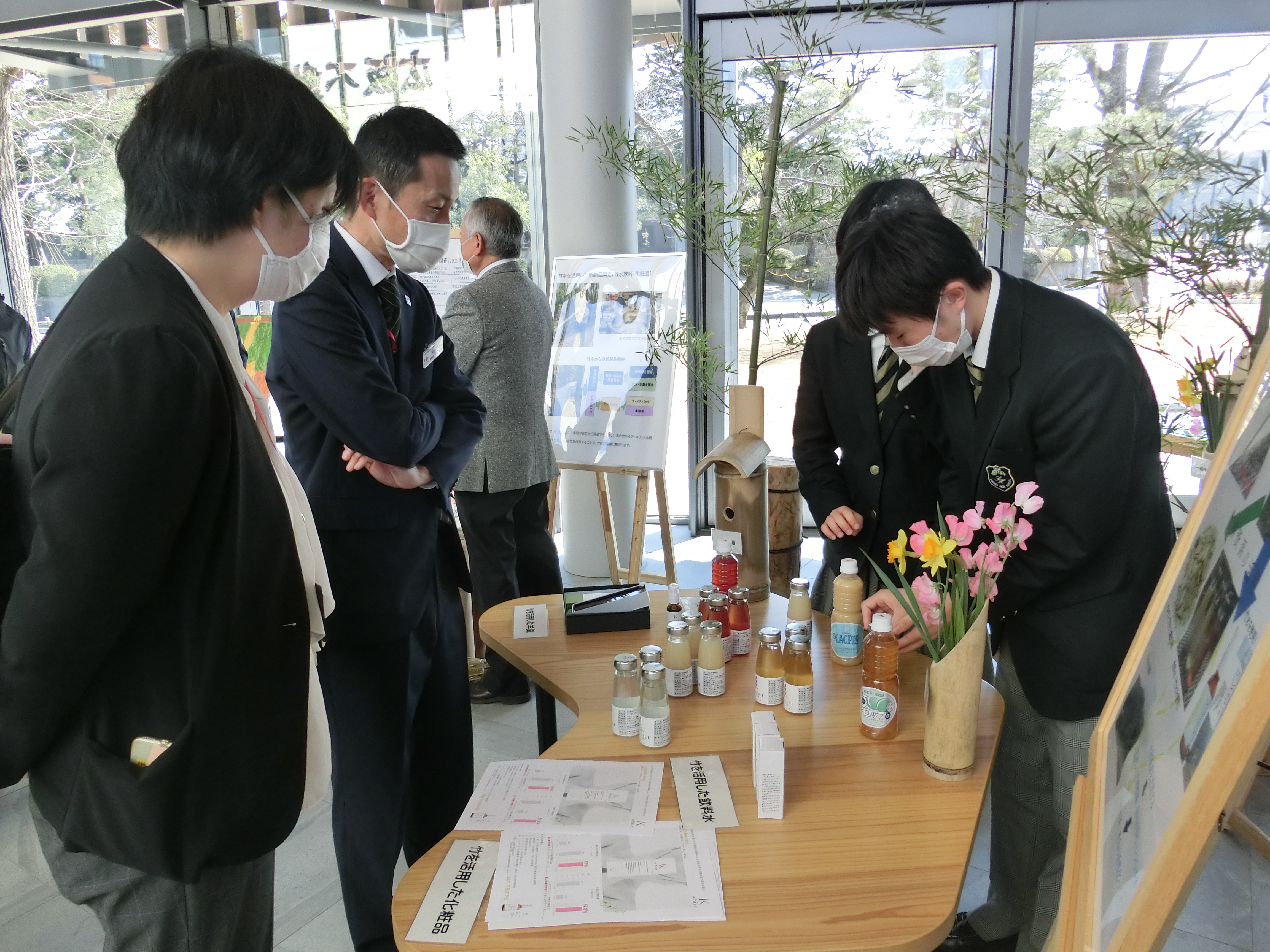 3月2日に卒業式が行われ、食品科学研究会からは3年生3名が卒業しました。2年間「廃棄果皮0システム」のプロジェクトリーダーを務め、チームを文部科学大臣賞や農林水産大臣賞受賞に導いた太田さんに、六星同窓会大藏会長より「六星賞」が授与されました。