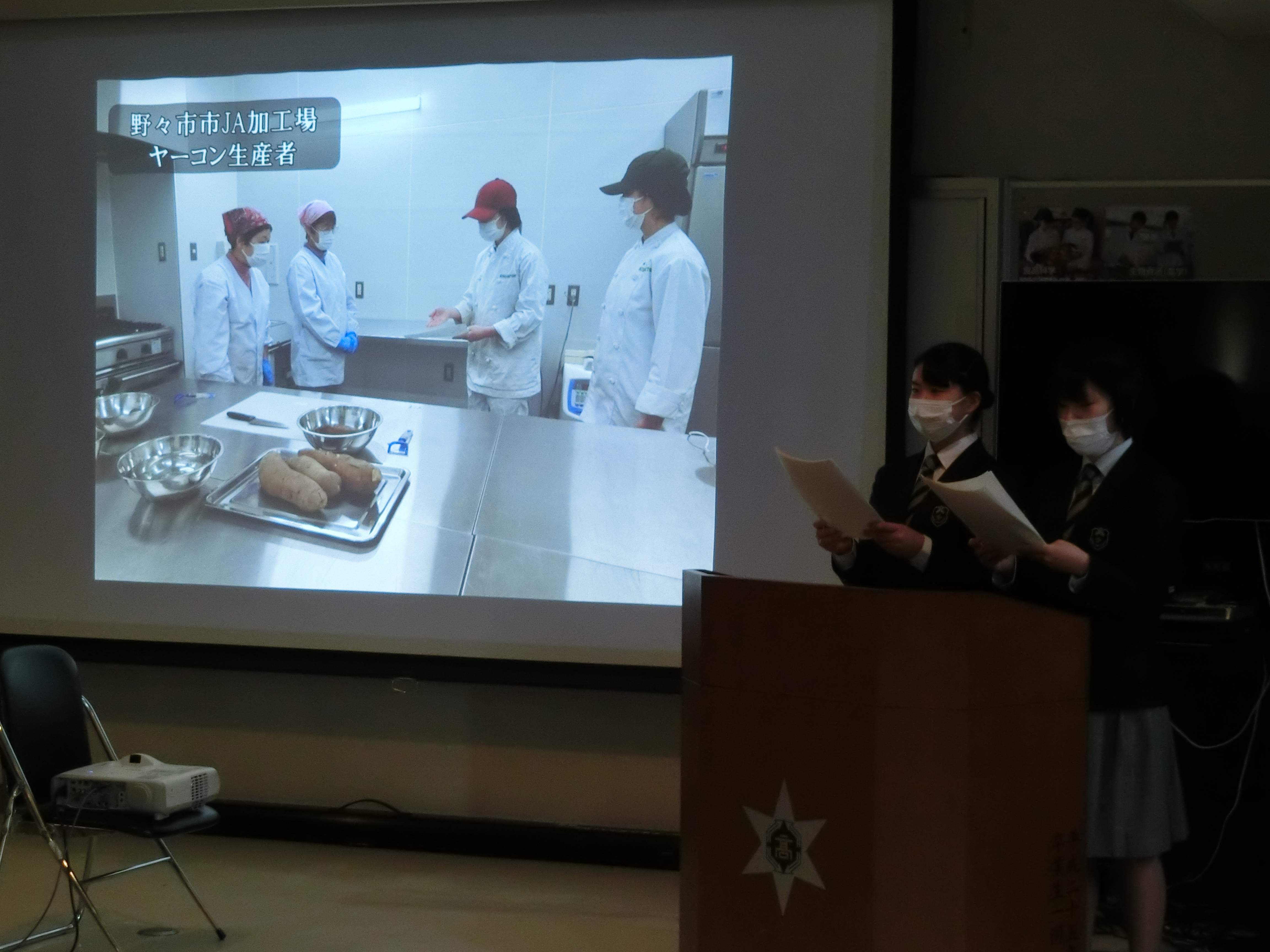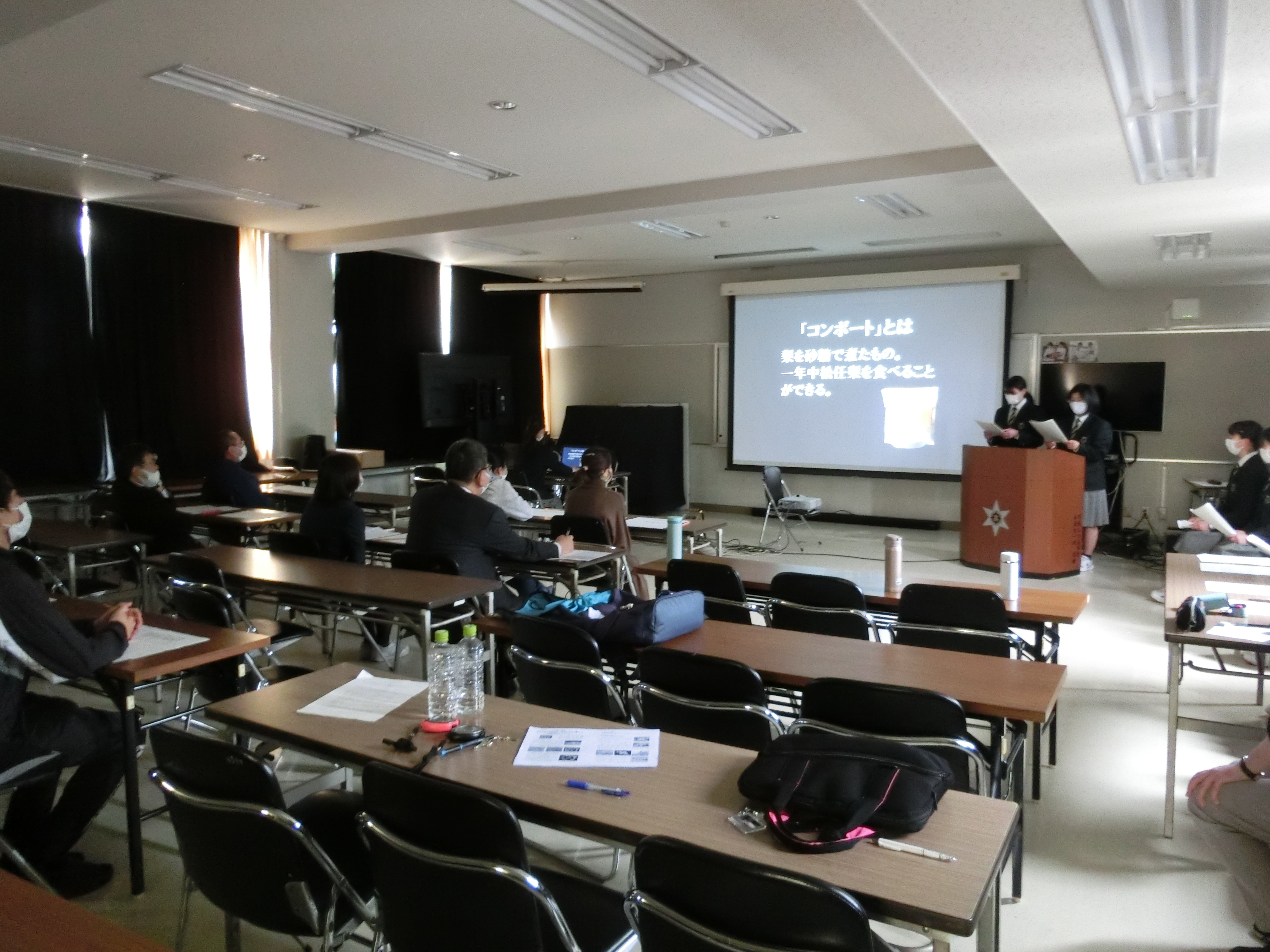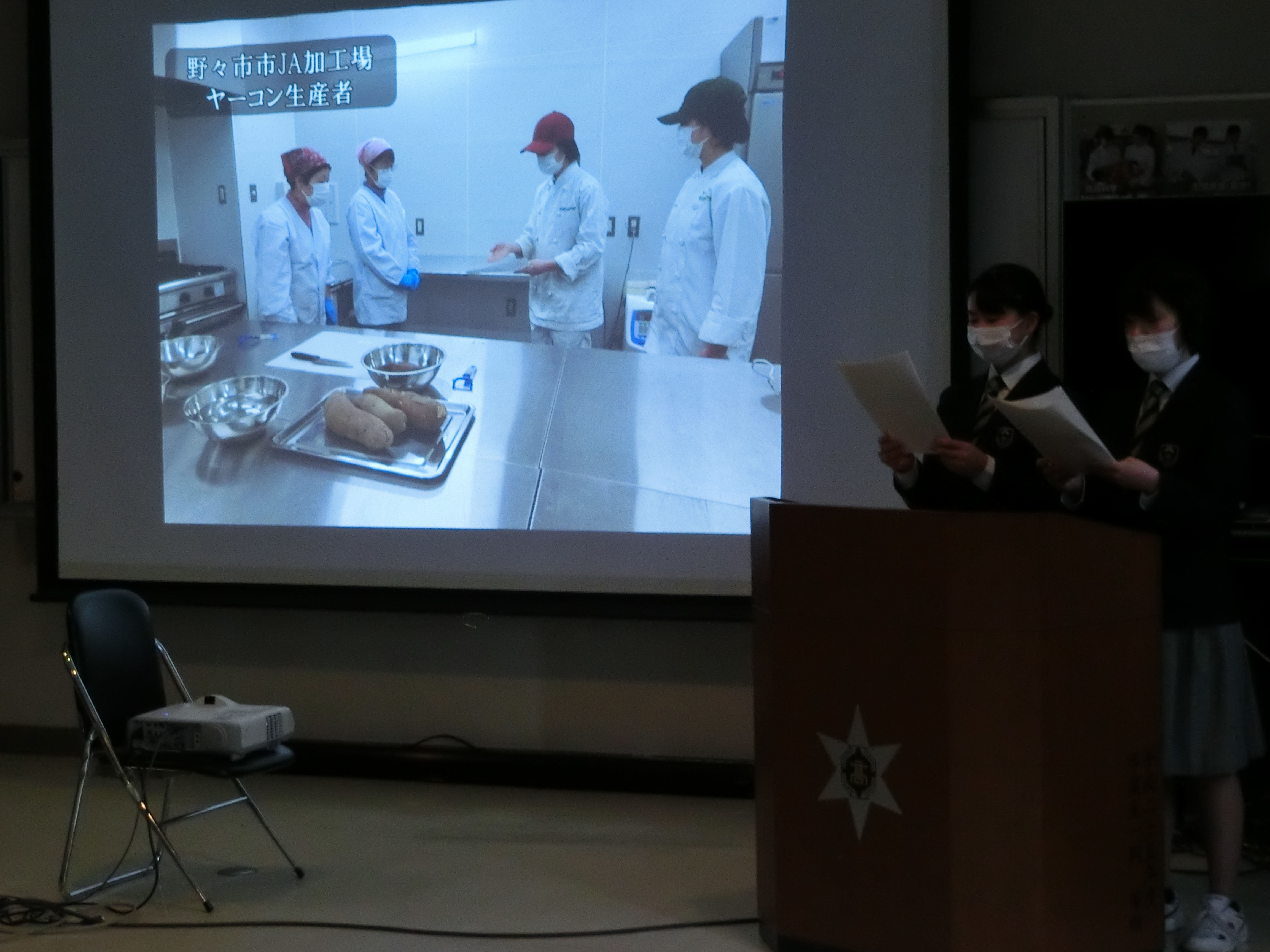 3月25日に農業クラブ校内大会が開催されました。私たち研究会もⅡ類に「松任梨班」Ⅲ類に「HACCP班」の2班出場しました。多くの先生方や農業クラブ役員から質問やご意見を頂き、大変参考になりました。県連大会に向けて頑張っていきたいです。(2021年3月25日)