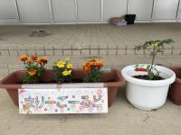 生活単元学習で、ミニトマト、マリーゴールド、ベゴニアの苗を植えました。プランターいっぱいに土を入れたり、苗に優しく土をかぶせたりすることができました。苗を植えた後は、看板やじょうろを作りました。毎朝バスから降りた後に、「大きくなあれ」の気持ちを込めて水をあげています♪
