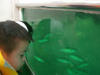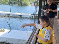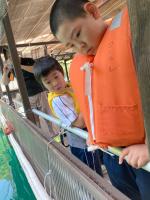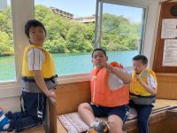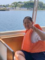 校外学習で九十九湾を周遊する遊覧船に乗りました。救命胴衣をしっかり着用して、いざ出発!心地よい海風を感じながら、九十九湾のきれいな景色を観ることができて、最高の時間を過ごしました。途中で生簀に立ち寄り、マダイやイシダイにエサをあげました。「食べたー。」「たくさん集まってきたー。」と児童も先生も大喜びでした♪