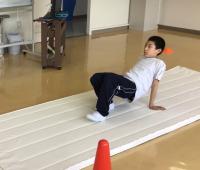 (写真は左から順に、生活単元学習:磁石の性質、美術:きりこアートを作ろう、職業家庭:くつ洗い、保健体育:マット運動)