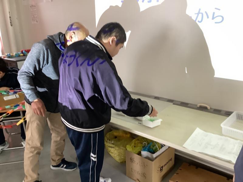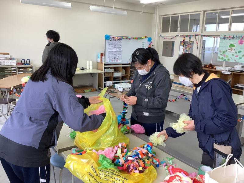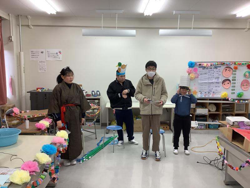 2月27日(月)高等部で卒業を祝う会をしました。前もって在校生で協力して部屋の飾り付けをしました。出し物は一年生の「クイズ」、二年生の「箱積み」、三年生の「中島こう門の秘密」とどれもとても面白くみんなで盛り上がりました。最後に合唱で「旅立ちの日に」を歌いました。楽しい思い出が増えました。
