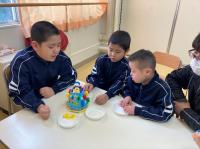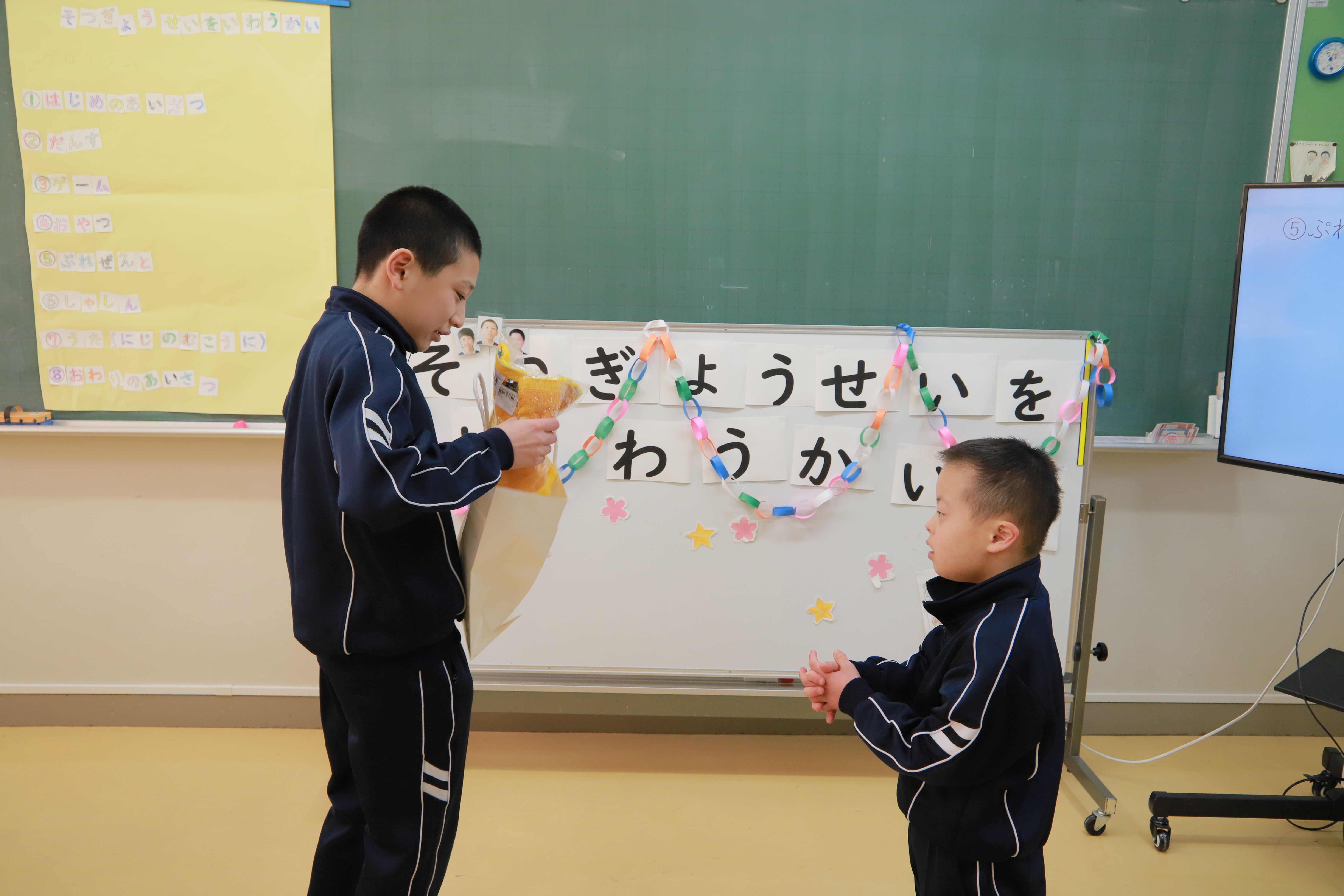 卒業生を送る会をしました。小学部は6年生3名が卒業します。一緒にゲームをしたり、ダンスをしたりプレゼントを渡したりして、楽しいひとときを過ごしました。かざりつけ、プレゼント選びなど、在校生がたくさん準備をし、素敵な会にすることができました。