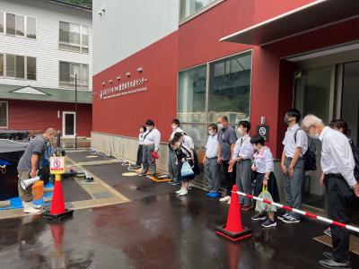 津波警報の解除後、体育館に集合し、消防署の方から、「押さない、走らない、しゃべらない、戻らない」の原則を守りながら避難できていたとの評価をうけました。また、地震の時は窓を開いて地域の防災無線などから情報を得ることが大事であると、教えてもらいました。
