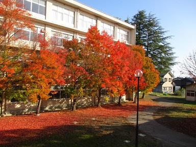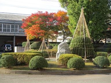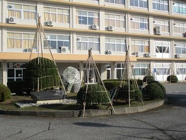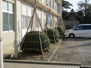 学務員さんが、校舎前の木々に雪吊りをしてくださいました。いよいよ冬に向けての準備です。