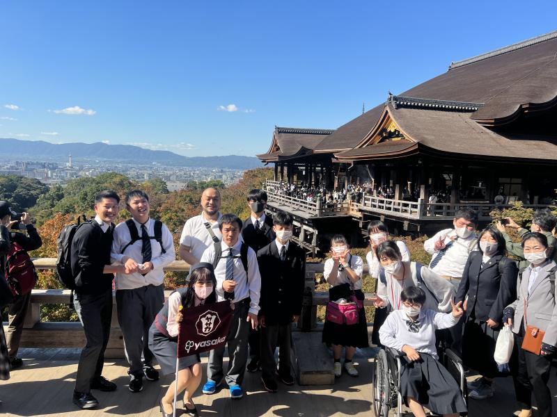 1日目は、和倉温泉駅からサンダーバードに乗って大阪に向かい「海遊館」へ行きました!ジンベイザメの泳ぐ巨大水槽やゴマフアザラシと飼育員さんとのやり取りに目を輝かせていました。ホテルに着くと、待ちに待ったバイキングです。学校で練習したことを思い出しながら、上手に盛り付けることができました。2日目は、「ユニバーサルスタジオジャパン」を満喫しました。楽しみにしていた、ニンテンドーエリアにも行くことができて良かったです。3日目には、「清水寺」へ行きました。清水の舞台から覗く京都の景色は最高でした。3日間とも天候にも恵まれ、それぞれの場所で楽しむことができました。旅行中は、集団行動を意識し、公共のマナーを守り、進んで挨拶をする姿が見られるなど、高等部3年生の成長を感じられる修学旅行となりました。