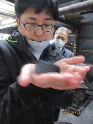 中学部は今週の生活単元学習では、地域の谷内口さんから里山学習で炭について勉強させて頂いています。その活動の一つで2月8日(火)大野製炭工場に見学に行ってきました。工場は山の上の方にあり、近づくにつれて雪も深くなりました。生徒たちはバスがつくと直ぐに降り、色々な見慣れない工具や設備に興味津々でした。火のついた炭を囲んで、炭を作る木、炭ができる仕組み、炭の大きさ、重さの変化などの話を詳しく伺い、生徒も教師もたくさん質問をして有意義な時間を過ごすことができました。大野さん、谷内口さんありがとうございました。