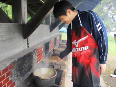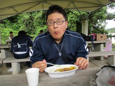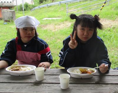 野外での活動ができました。午前は野外炊飯でカレーライス作り、午後は貝殻と石で壁