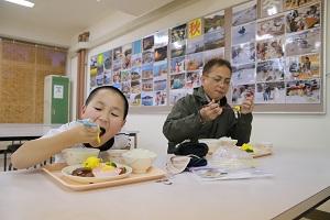 また、学校で預かっていた非常食をいつもとは違う場所(教室)で試食してみました。水を入れて1時間ほど待つものや、加熱材が入っているもの等、普段あまり食べたことがないものだったので戸惑う様子も見られましたが、ほとんどの児童生徒は食べることができました。今後も災害から「自分の命を守る勉強」(防災学習)を継続していきたいと考えています。