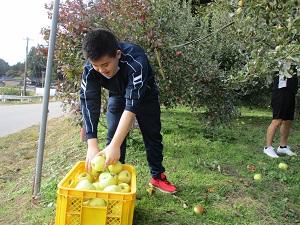 初めに稲垣さんに、もぎ方の説明をお聞きした後、それぞれ採りたいりんごを見定めて上手にもぐことができました。持ち帰って、学校のみんなに配られるほどたくさんいただきました。稲垣さんのお手伝いとして、コンテナ1杯のりんごも丁寧にもぐこともできました。生徒にはとてもいい体験になりました。感謝、感謝の気持ちです。