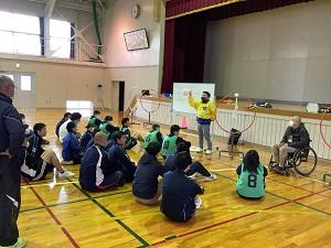 11.10(水)に中学部、高等部生徒を対象に部活動が行われました。この日は、石川県障害者スポーツ普及促進事業として、講師に“石川県障害者フライングディスク協会”より2名の先生に来ていただき、フライングディスク競技を楽しみました。