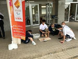 8.16(月)は全校出校日でした。この日は、まもなく行われるパラリンピックの採火を行いました。珠洲分校では、高等部が代表して火おこしを行い、小・中学部はリモート中継をしながら各教室で「まいぎり体験」を行いました。10分程粘り強く取り組むと、見事に火を起こすことができました! 珠洲分校で採火した火は金沢まで運ばれ、生徒会長の西塔君が代表して産業展示館で点火してきました!