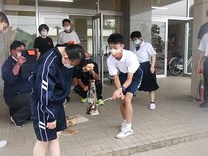 今回実施した火起こしの本番は、8,16(月)の全校登校日に行われる“聖火フェスティバル”です。本番も達人から教わったコツを意識してトーチに聖火を灯して欲しいです。
