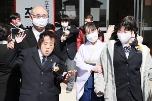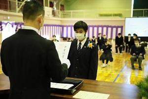 3月4日(木)、第16回卒業証書授与式が行われました。御来賓(育友会会長のみ)・保護者・職員の拍手の中、小学部1名、中学部3分名、高等部5名の卒業生が新型コロナウィルスに負けない元気で笑顔いっぱいの姿で入場しました。新型コロナウィルス感染症対応措置として、一部内容の簡略化した卒業式でしたが、橋本校長より卒業証書が授与され、厳粛に式を終えることができました。