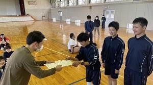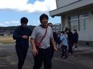 新型コロナウイルス感染症による学校行事の減少と部活動で参加していた「石川県耐寒継走大会七尾・中島大会の中止」に伴い、今年度は校内リレーマラソン大会を実施しました。雪の日が続き体育館内での実施となりましたが、選手たちは仲間や小学部の応援を背に懸命に走っていました。