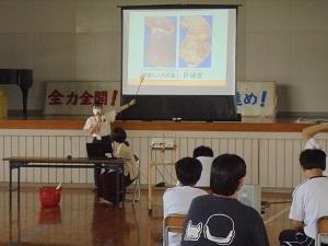 能登北部保健福祉センターから講師を招き、酒やたばこが体に与える影響や害、危険薬物の乱用が心身に深い障害を及ぼすことを学びました。酒、たばこ、危険薬物に依存性があること、お酒を一気に飲むことの危険性、たばこに含まれる有害物質が200種類あること等、クイズを交え生徒と講師が言葉をやり取りしながらの学びとなりました。