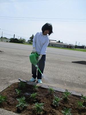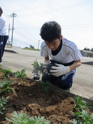 中学部 沿道の花植えしました