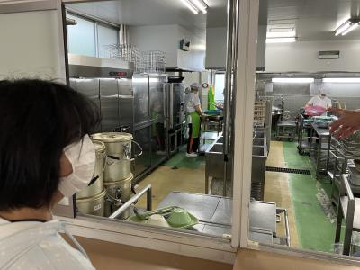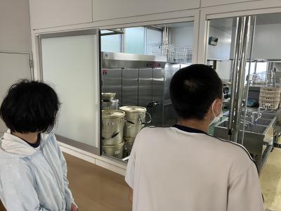 自分たちが食べている給食がどのように作られているかを学習しており、宝立小中学校の共同調理場へ見学に行ってきました。栄養教諭のお話を聞いたり、質問をしたりしながら調理の様子を興味深く見ている姿が見られました。