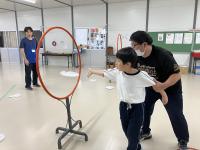 小学部では、スポーツの秋ということで「フライングディスク」と「ボッチャ」の2つのニュースポーツを体験しました。はじめはうまくいかなくても何度もチャレンジすることで、コツを掴んでどんどん上手になっていきました。輪っかにディスクが通ったり、ボールを転がして狙った所に止まったりした時は、とても嬉しそうな笑顔が見られました。