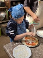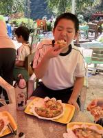 10月15日(水)に、ケロンの小さな村へ行きました。気候にも恵まれ、子どもたちも喜んですべり台や遊具などで遊んでいました。お昼は、ピザ焼き体験を行い、一人一枚ピザを焼いて食べました。生地を伸ばし、トマトやチーズなどをのせ、美味しいピザを作ることができました。自然のなか、いっぱい遊んで、自分で作った出来立てのピザを食べて、とても素敵な時間となりました。