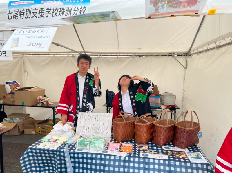 高等部の2人がのと里山空港で行われた高校生チャレンジショップに参加し、高等部と中学部の作業製品を販売しました。地元の人だけでなく、東京からの飛行機を利用する普段出会うことのできない人たちなど、たくさんのお客様に製品を見て「素敵ね」「かわいい」など感想を伝えてもらい、たくさんの製品をお買い上げいただきました。ありがとうございます。