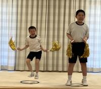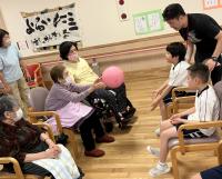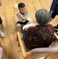 特別養護老人ホーム第3長寿園の皆さんと交流をしました。「パワフルパワー」のダンスを披露したり、「あんたがたどこさ」の手遊びや「ふわふわボールキャッチ」を一緒に楽しみました。