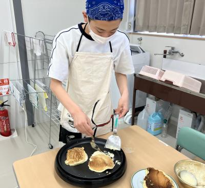 生活単元学習の授業で、「スイーツたこやき」を作りました。「スイーツたこやき」という名前の通り、中に入れるのはタコではなく、チョコレートやこしあんなどの甘い具材です。見た目はたこやきそっくりですが、おやつとして楽しめるたこやきです。