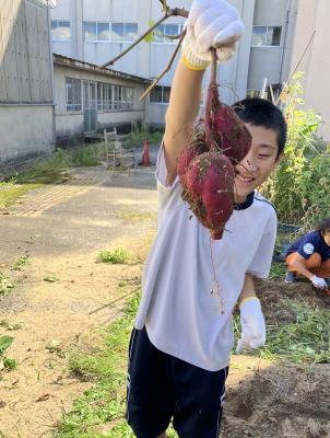 5月に植えたさつまいもがいよいよ収穫の時期となりました。生活単元学習の時間に、みんなで協力をしてすべて収穫することができました。いろんな形・大きさのさつまいもがたくさん採れ、生徒たちも大満足でした。今後、調理実習などでおいしく食べたいと思います。