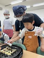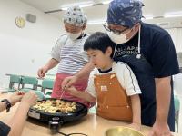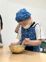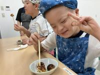 ホットケーキミックスと牛乳を混ぜたり、自分の好きな具材を入れたり、スイーツたこやきを転がしたりすることを分担して調理しました。
