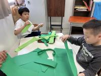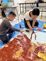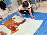 図工の時間に「石川県特別支援学校 ホッと・アーッと展」に出展する作品を製作しました。今年は、絵の具や画用紙、紙粘土などの材料を使って大きな木を作ります。紙をちぎって葉っぱを作ったり、絵の具をローラーで伸ばして木の幹を表現したりしました。みんなの頑張りのおかげで、勢いのある力強い木の幹が完成しました!これからどんな木になるのかな?