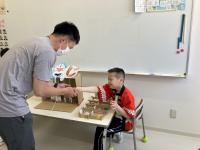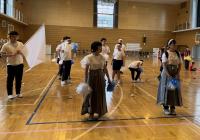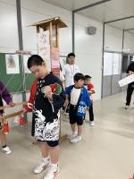 法被を着て「わっしょい!わっしょい!」のかけ声とともにキリコの運行がスタート。みんなで「おっとっと音頭」を踊った後は「ひもくじ」と「さかなつり」のお店屋さんを開きました。チケットを受け取ったり、景品を渡したり全員が自分の役割を果たすことができました。参加した生徒や先生方に「楽しかったよ♪」「ありがとう。」とたくさん言ってもらえて良かったです。