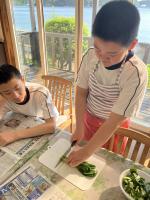 【2日目】朝食は、みんなでおにぎりとみそ汁を作って食べました。役割を分担し協力することができました。その後、まつなみキッズセンターで余暇活動をそれぞれ楽しみました。