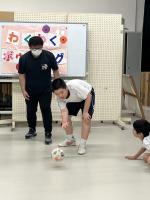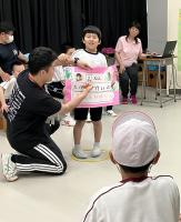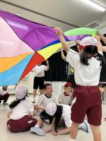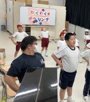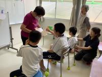お互いに自己紹介をし合った後、一緒にダンスを踊ったり、バルーンをしたり、ボウリングをしたりして楽しみました。ボウリングでは、名前を呼んでボールを渡したり、「〇〇さん、がんばれ~」と声を掛け、応援する場面が多く見られました。最後にプレゼント交換をした際は、笑顔で「どうぞ。」「ありがとう。」と仲を深める場面もみられました。