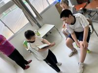 1日目は小学部全員で「のと海洋ふれあいセンター」で、磯に住む巻き貝やカニ、ウミウシなど様々な海洋生物を実際に手で触れて観察しました。子どもたちも「なにこれ!?」と興味津々でした。その後、2、3年生は学校へ、5、6年生は能登漁火ユースホステルで宿泊し、2日目は小木の町並みを散策したり、松波キッズセンターで、パズルやコマのおもちゃなどで遊んだりしました。翌日の生活単元学習の授業では、校外学習の思い出を振り返りました。