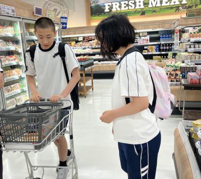 大丸(スーパー)へ買い物学習に行ってきました。初めに、スーパーにはどんな商品がどんな順番で並べられているのか、ワークシートで確認をしながら店内を回りました。生徒たちは、「○○あるね!」などと反応しながら学習することができました。その後、家族から頼まれた物、学期末のお楽しみ会で調理予定の材料を探し、しっかりと買い物することができました!